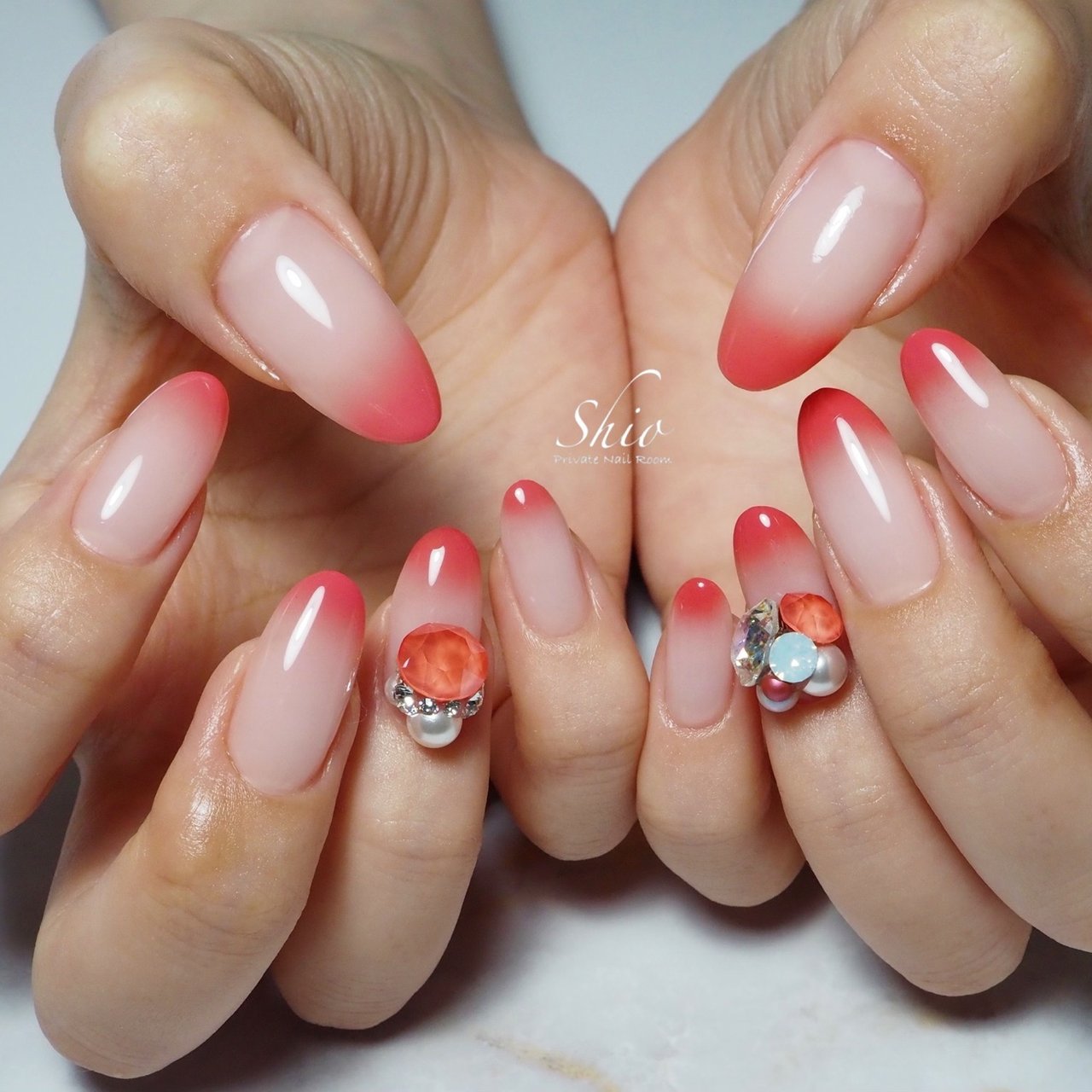 サーモンピンクでグラデーション 藤沢 湘南の完全ご予約制貸切ネイルサロンマクティ ズ 藤沢駅南口徒歩6分