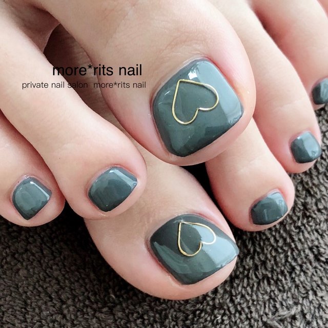 秋フット フットネイル 秋 モスグリーンネイル 大人フットネイル Nail Salon Rosemind