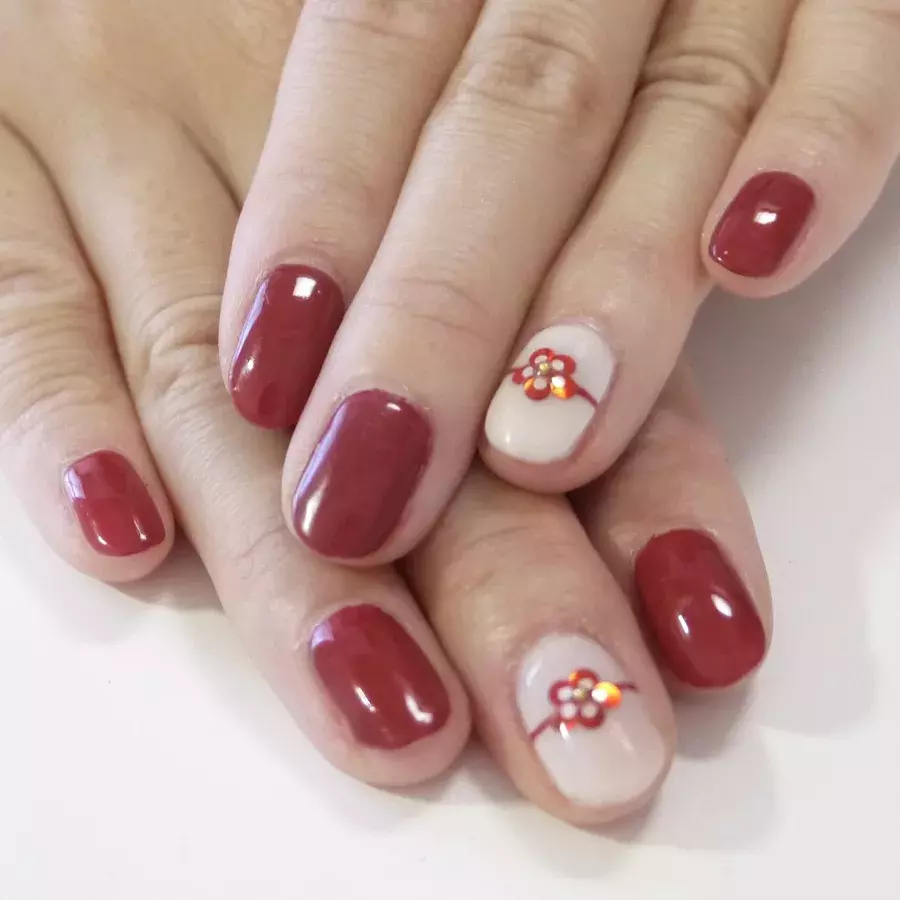 冬ネイル ホログラムを並べるだけ 赤のお花でお正月ネイル マキアオンライン Maquia Online